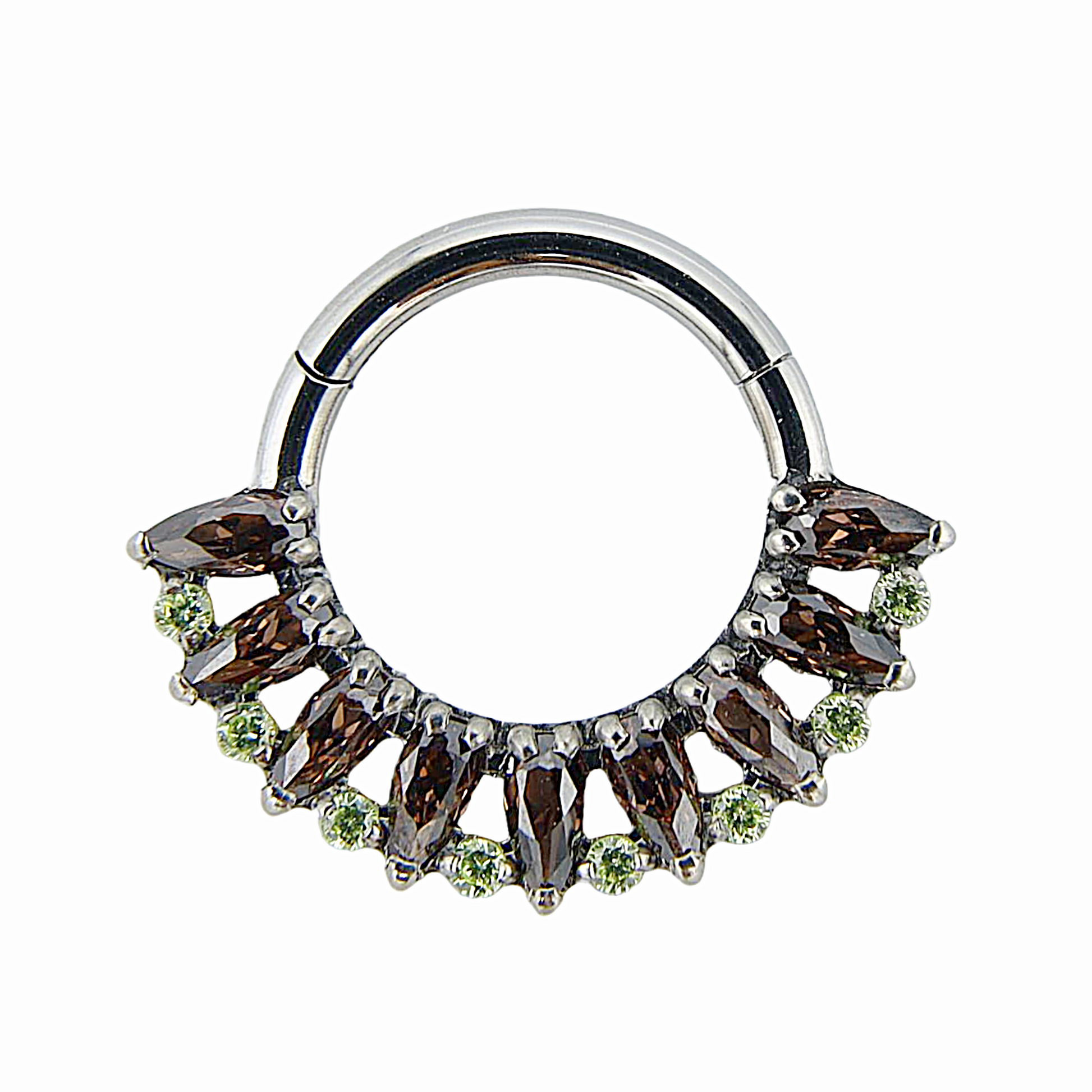 Althéa - Titanium Clicker Ring F136 - Silver Finish - 1.2*8mm - Black Zircon - Green Zircon