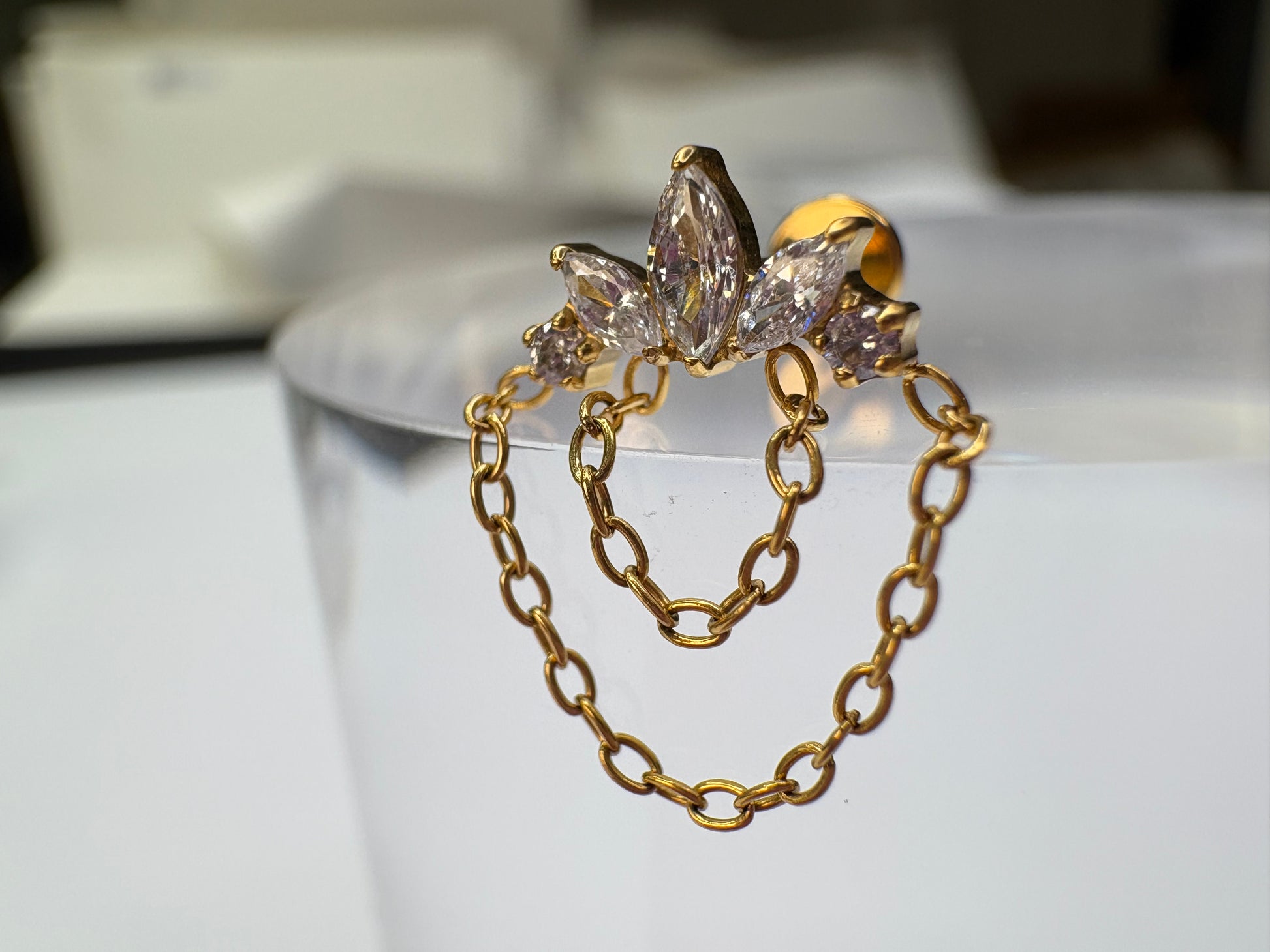 Description fournisseur : Titanium Internally Thread 3 Marquise CZ Top