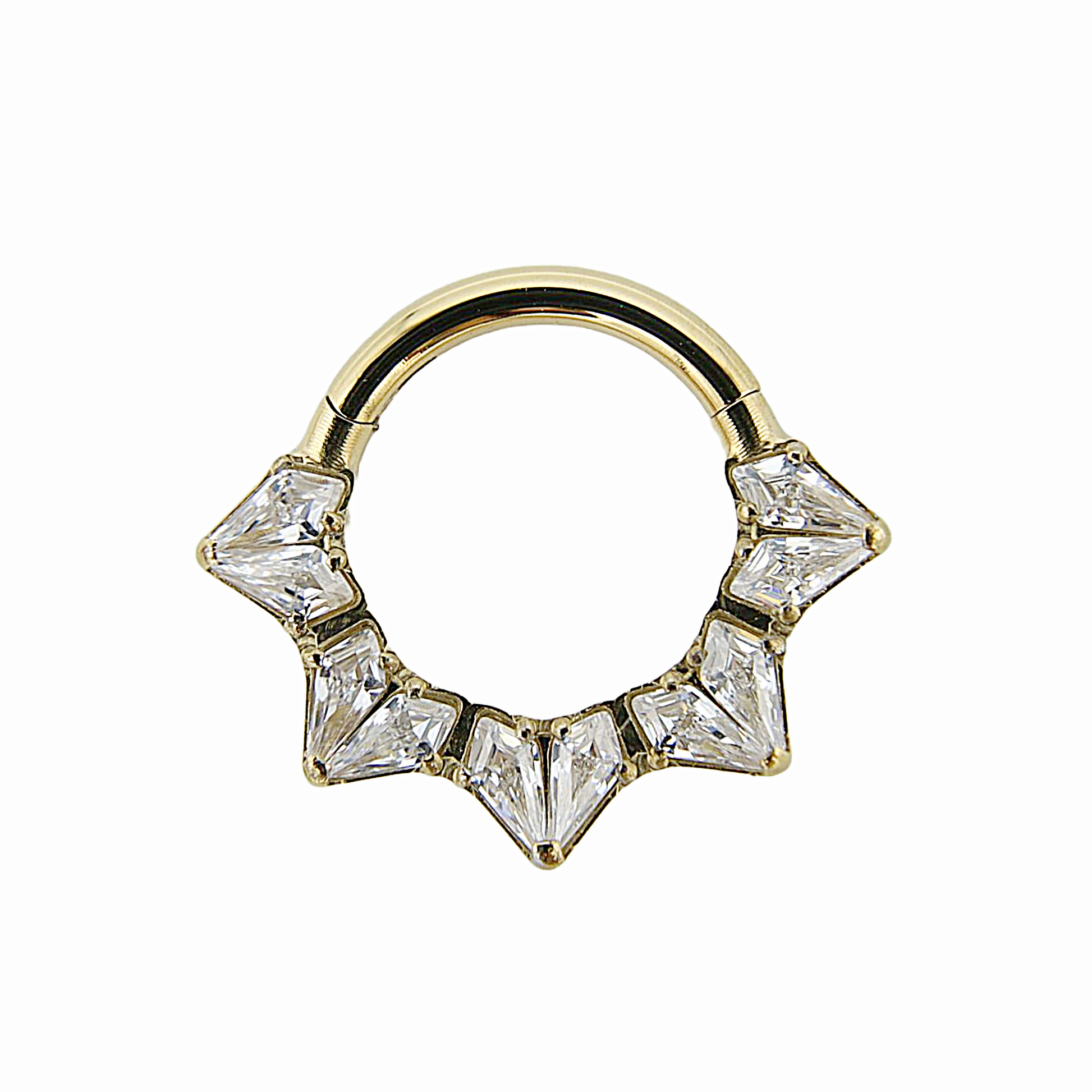 Description fournisseur : PVD GOLD ASTM F136 Titanium Hinged segment ring crystal