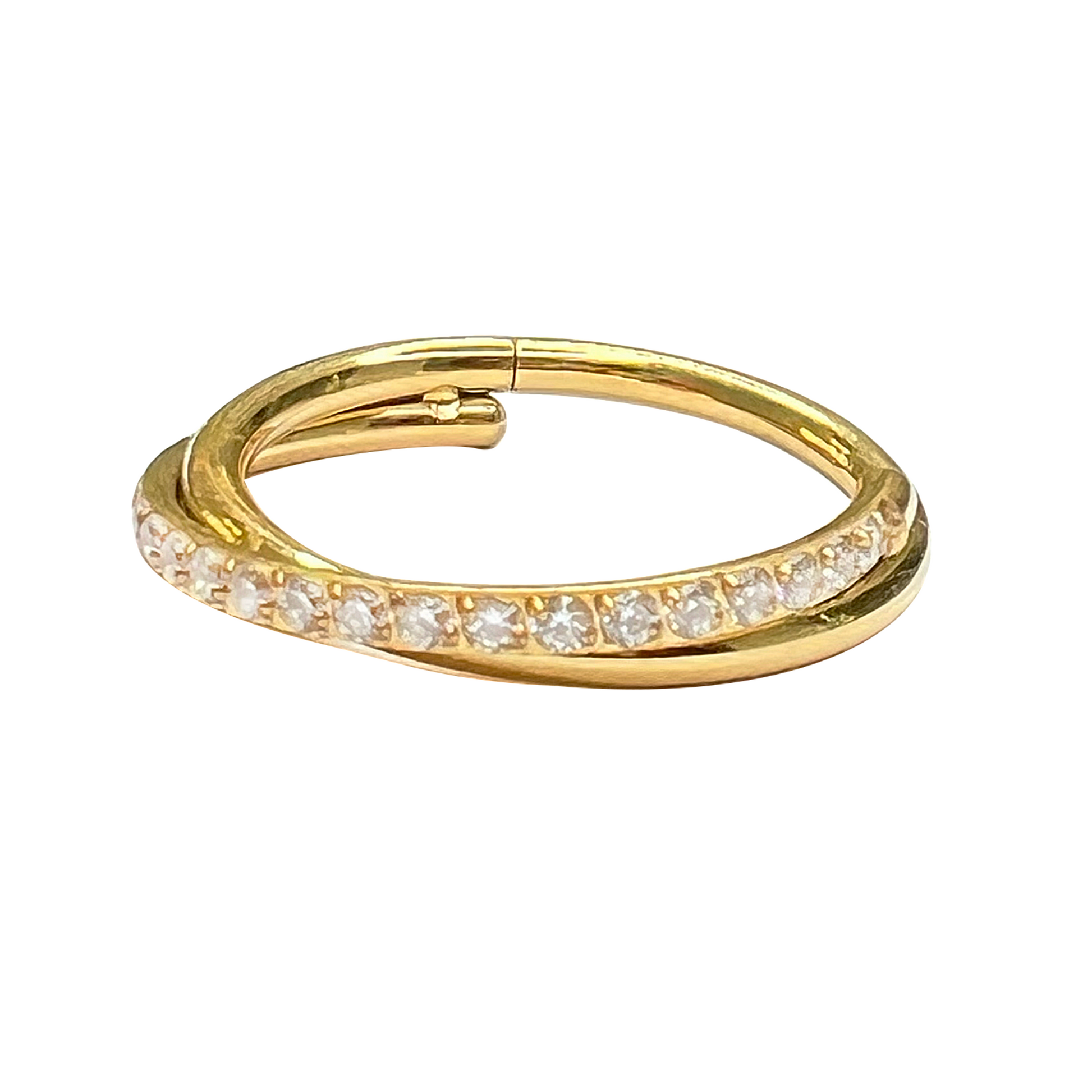 Trinity - Anneau Clicker Titane F136 - Finition Or - 1.2*12 mm - Zyrcon Blanc