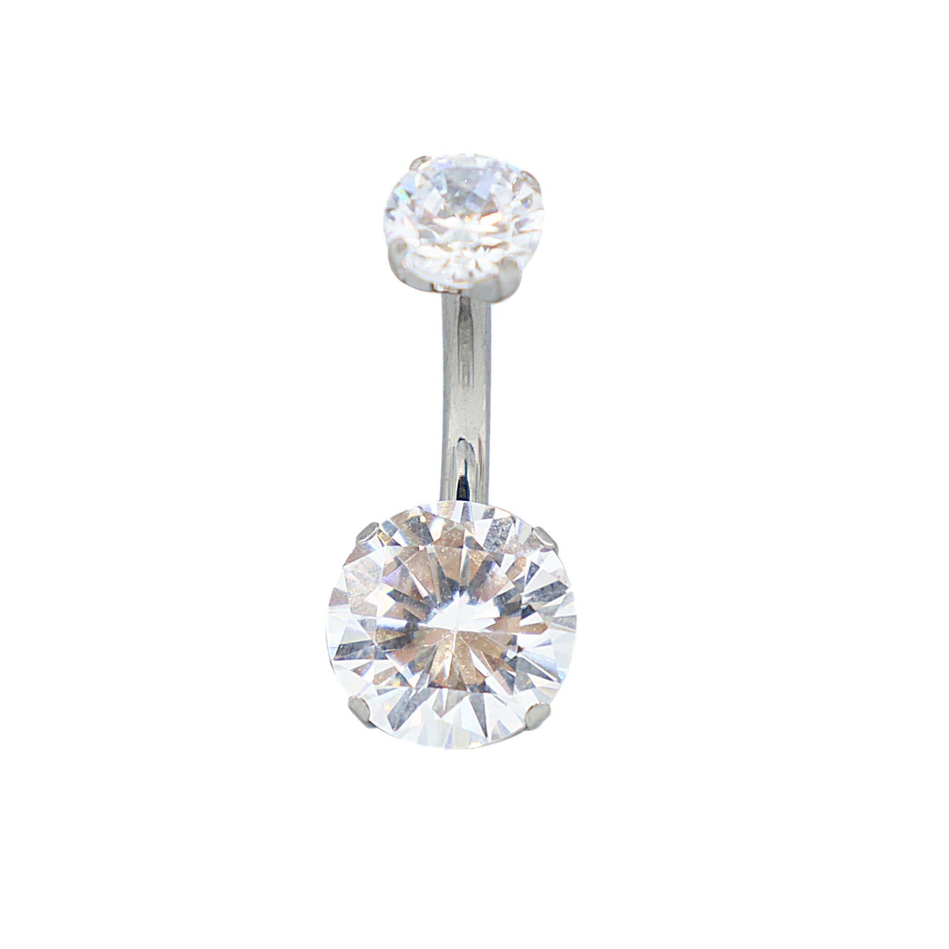 Zora - Nombril Titane F136 - Finition Argent - 1.6*10*5/8mm - Zircon blanc
